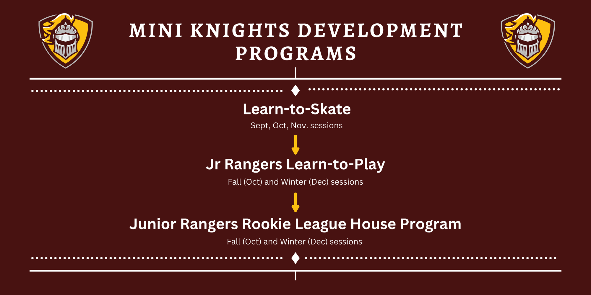 The Junior Rangers Learn-to-Play program is a great way to get all of your hockey gear needed for our Mini Knights Learn-to-Skate and the Jr Rangers Rookie League programs.